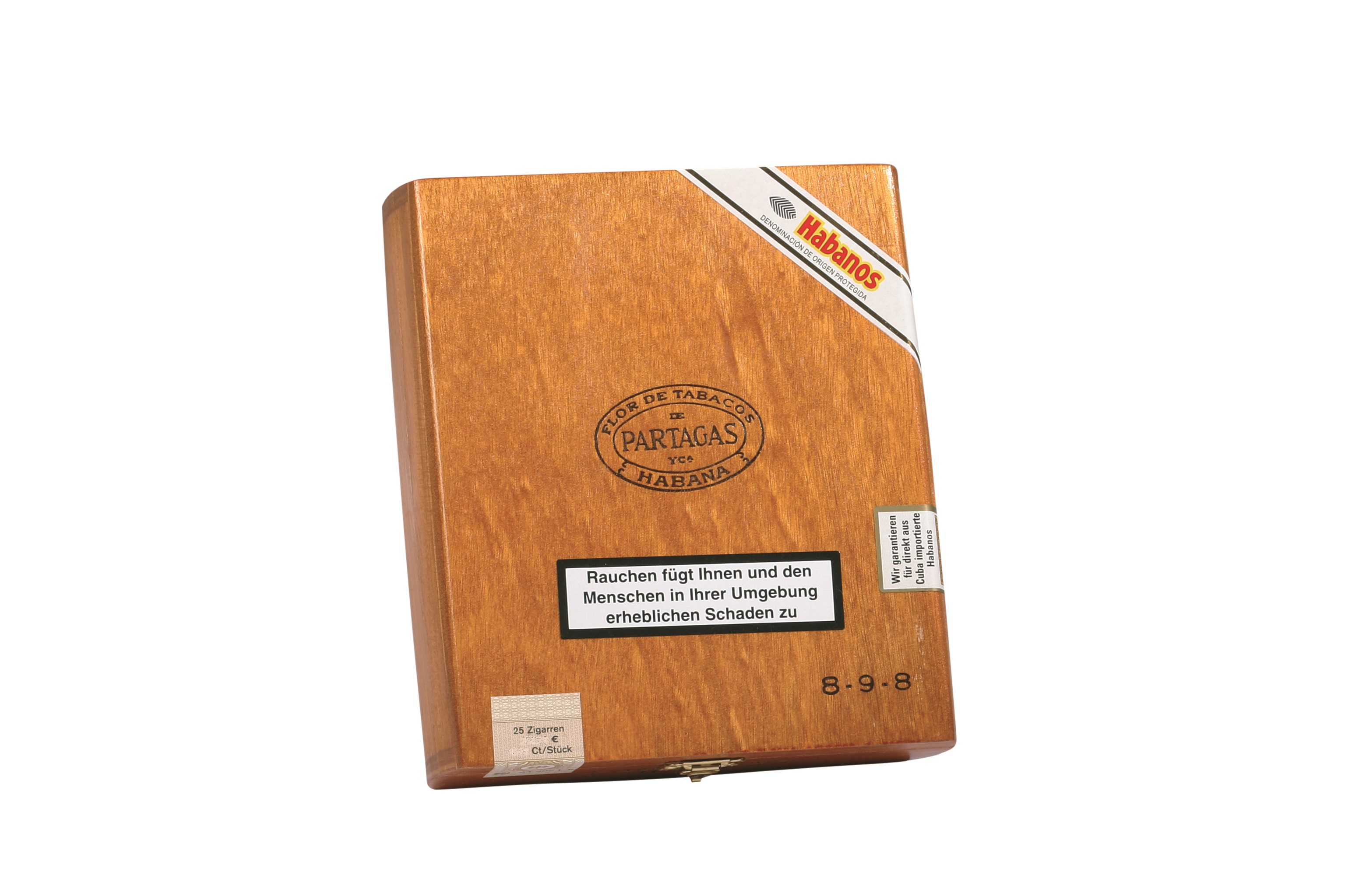 Hierbei handelt es sich um eine lackierte Zigarrenkiste mit abgerundeten Ecken und Seiten. Die Habanos ruhen in einer 8-9-8 dreilagigen Schichtung und sind in ihrer Form immer rund.