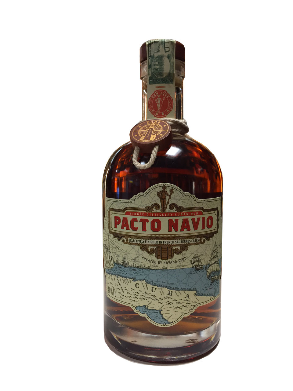 „Pacto Navio" erinnert an einen Pakt aus dem Jahr 1815, der den Frieden zwischen Spanien und Frankreich besiegelte und damit die Rückkehr der Navíos - Handelsschiffe zwischen Europa und Havanna - ermöglichte. Französische Schiffe brachten von nun an den kostbaren Sauternes-Wein über den Ozean nach Kuba. Die hierfür verwendeten Weinfässer wurden dort erneut mit Rum befüllt und zurück nach Europa geschickt. Während der Reise reifte der Rum weiter und nahm einen Teil der Weinaromen an - die Geburtsstunde des „Pacto Navio". Der Rum, dessen Name so viel wie „Schiffspakt" bedeutet, ist eine genussvolle Reminiszenz an diese Ära.