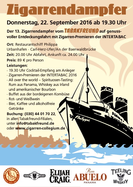 Der 13.Zigarrendampfer vom TABAKFREUND unf genussvoller Entdeckungsfahrt mit Zigarren-Premieren der INTERTABAC